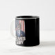 Cat in Suite with Trump Hair American Flag 9 Lives Two-Tone Coffee Mug