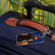 Easily personalise the reverse side of this luggage tag featuring a gorgeous golden, orange and brown tortoiseshell cat sitting on a red pillow, staring out the window into a midnight blue sky. She casts a shadow on the gold coloured wooden windowsill. Make your luggage stand out on an airport carousel with unique tag designs!