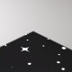 A minimalist digital art of a cat silhouette, perched on a tree branch, under a starry night sky lit by the moon contrasting between the dark silhouette and the night sky, simplistic winter tree shapes with cool blue and black tones.