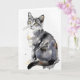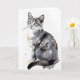 A watercolor depiction of a cat showcases its bright yellow eyes and soft grey and white fur, exuding a serene and attentive demeanour. The blending of colours highlights the cat's fur texture, giving it a lifelike appearance.
