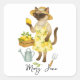 Cat is gardening yellow lemon square sticker
