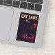 Cat Lady struts in her sassy head to toe catsuit, as she walks her equally confident, leashed black cat. The dimly lit street is illuminated by the crescent moon in this 'nighttime in the city' themed comic art. Show off your love for cats, while poking fun at the cat lady label, with this unique graphic. A perfect statement sticker for your car, cooler, water bottle, laptop, notebook and more!
