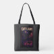 Show off your love for cats, while poking fun at the cat lady label, with this unique charcoal tote bag. Cat Lady struts in her sassy head to toe catsuit, as she walks her equally confident, leashed black cat. The dimly lit street is illuminated by the crescent moon in this 'nighttime in the city' themed comic art graphic. Meow!