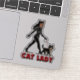 She struts her stuff in a sassy catsuit, complete with kitty ears, as she walks her grumpy tuxedo cat on a leash. The bold red "Cat Lady" text finishes off this comic themed graphic. Show off your love for cats, while poking fun at the cat lady label, with this cute vinyl sticker. • Sticker available in glossy white, matte white, and transparent. Transparent stickers show best on light surfaces. For darker items, a white sticker base is recommended for better visibility and contrast.