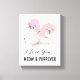 Cute illustration of two kittens with a big heart in the background. The funny pun text says "I Love You...Meow and Purrever." Great for nursery room, kids room, or living room for cat lovers! Illustration and design by Namibear Art Studio. ©Namibear