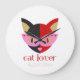 This adorable cat in black, red, pink, and gold glitter colors with star glasses adds a girly and trendy touch to your acrylic round clock. The text "Cat Lover" is written in red in a very original decorative font. We added a complementary line with a customizable name written in an elegant red dotted font. Please, replace the default name with yours, or feel free to delete it.