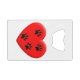 Cute cartoon style red heart and cat paw prints. Custom bottle openers.