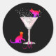 Cat Lovers Bubbles Modern Black Cocktail Monogram Classic Round Sticker