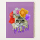 Such a cute little cat with a colourful floral headdress of roses and fun text MEOW a great personalised gift for anyone who adores pussy cats.