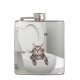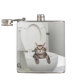 Tabby kitty cat settled into and looking out from a toilet or commode vinyl flask for cat lovers with a sense of humour