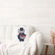 Do you like cute throw pillows? This throw pillow features a cute gray kawaii cat playing the drums while wearing a navy blue and red marching band uniform.