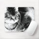 A mousepad with a black and white photo of a half-Burmese cat in close-up.
