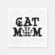 "Cat Mum" text with black and white buffalo plaid pawprint and black cat hairs on white background.