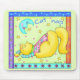 “Cat Nap” cat is doing what cats do best - napping. This kitty is wearing an adorable pink top with stars and aqua striped sleeves. The moon is hanging above “Cat Nap” kitty, watching over with a smile. “Cat Nap” kitty also has a blissful smile so you know that he is having sweet dreams. Text of “Cat Nap” is on a lime green background sprinkled with yellow stars and pink dots. The image is enclosed with a colourful whimsy border. “Cat Nap” yellow cat is one of 10 cats from the fabric collection “Meow Meow” by Phyllis Dobbs.