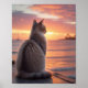 Cat on a Pier with a Sunset and Oceanic Backdrop Poster