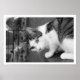 Cat on Ledge Watching Bird Poster