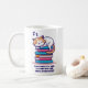 Cat on Stack of Books Cute Personalised Reader Tea Coffee Mug