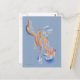 Cat Pastel Orange and White Tabby on Blue Postcard
