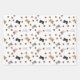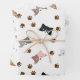 These cute sheets of wrapping paper have a cat pattern with grey, black, brown & pink kitty faces and paw prints against a white background.