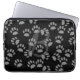 Cat Paw Print Pattern Monogrammed Black and Gray Laptop Sleeve
