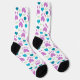 Are you looking for a gift for the cat lover in your life? They'll love these socks that have a pattern of pink cat paws, blue hearts and green meows.