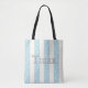 Cat Paw Prints on Pale Blue & White Stripes Custom Tote Bag