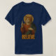I give wanted to give this a 4 instead of a 5 because these Basic DARK T0shirts run unexpectedly SLIM or Narrow. Which is great if you do not have a potbelly, but I have a paunch. It isn't the shirt's fault that I've got a beer belly. The design and shirt itself is a quality cotton shirt. The color is more of a deep purple, but still a very pretty color. The Basic DARK T-shirts run a bit SLIMMER than the Basic Ts. The neck is a fraction narrower (or seems to be narrower) also. I'm a paunchy middle-aged woman and my neck is 12 inches (31cm) thick and the neckline fell about the same as in the photo of the man, and I had the desire to tug it a bit. So if you're a thick necked man or like loose shirts, be aware these are slimmer shirts. Once I get rid of my lockdown paunch it'll look great. The shirt washed well in cold water with no apparent bleeding. We don't have a dryer, so it hung dry. Did not shrink. Love the colors and the design. The design looks smaller on my shirt than it does on the model on-line. But still, it looks good on the shirt. The printing looks as it does on the model, just the size seems fractionally smaller. Washed garment in cold water, hung dry and design appeared unaffected.