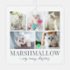This simple and elegant boho-inspired square Christmas ornament is a sweet way to celebrate your cat during the holiday season. The design features a collage layout with space for five photos on both the front and back, making it a double-sided keepsake full of your favourite feline memories. Your cat's name is displayed underneath the collage on the front in a classic serif font, with a customisable line of text below it. You can leave it as "A Very Meowy Christmas," or change it to a short love note, "In Loving Memory," or "Forever in Our Hearts" for a memorial piece.