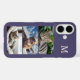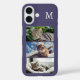 Enjoy your favourite cat photos with this stylish violet monogrammed phone case. Featuring a modern vertical photo collage, this design holds three pet photos so you can showcase your feline companions. An elegant monogram at the top adds an individual touch, while the rich violet background gives it a bold, modern look. An ideal gift for cat lovers.