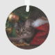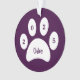 Here's a cute keepsake ornament featuring your precious kitty cat's photo on one side. The other side has a white paw print featuring your pet's name and the current year on a purple background.