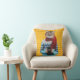 Add some colour to any room with the help of this cute and quirky kitty. This throw pillow features a photo collage style illustration of a cat dressed in a retro style sweater and holding a vintage camera. The tabby in his red scarf and blue sweater is set against a bright yellow brick wall.