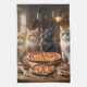 Pictured Are Four Cats Sitting Around A Table With A Pizza Ready To Eat.