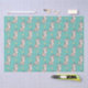 Cat Reaching For Yellow Butterfly on Light Teal Tissue Paper