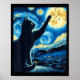 Cat Reaching Moon Starry Night Funny Kitten Men Wo Poster