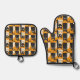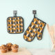 Cat Retro Black Yellow Pattern Oven Mitt & Pot Holder Set