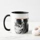 A white mug with a black rim and handle and a black and white close up photograph of a watchful half-burmese cat. In red, just below the rim are the words, 'watching you watching me watching you...' Matching mousepad and totebag also available.