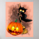 Cat Scared by Pumpkin Fun Halloween Character Poster