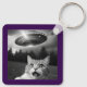 Cat Selfie UFO Keychain Funny Alien Abduction