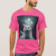 I give wanted to give this a 4 instead of a 5 because these Basic DARK T0shirts run unexpectedly SLIM or Narrow. Which is great if you do not have a potbelly, but I have a paunch. It isn't the shirt's fault that I've got a beer belly. The design and shirt itself is a quality cotton shirt. The color is more of a deep purple, but still a very pretty color. The Basic DARK T-shirts run a bit SLIMMER than the Basic Ts. The neck is a fraction narrower (or seems to be narrower) also. I'm a paunchy middle-aged woman and my neck is 12 inches (31cm) thick and the neckline fell about the same as in the photo of the man, and I had the desire to tug it a bit. So if you're a thick necked man or like loose shirts, be aware these are slimmer shirts. Once I get rid of my lockdown paunch it'll look great. The shirt washed well in cold water with no apparent bleeding. We don't have a dryer, so it hung dry. Did not shrink. Love the colors and the design. The design looks smaller on my shirt than it does on the model on-line. But still, it looks good on the shirt. The printing looks as it does on the model, just the size seems fractionally smaller. Washed garment in cold water, hung dry and design appeared unaffected.