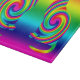 This colourful design features two kitty cats displaying rainbow colours in an abstract design with a twist. It results in a multi-coloured spiral or swirl of vibrant colours. This feline silhouette contains the seven main colours of the rainbow; red, orange, yellow, green, blue, indigo and violet. Some other colours that may also be seen are pink, cyan, and purple. The cats are sitting facing each other.