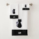 Cat Silhouette & monogram on black & white Bath To Towel Set