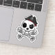 "Set sail on a spooky, whiskered adventure with this hilarious Cat Skull & Crossbones vinyl sticker – the ultimate mashup of pirate mischief and feline charm! Featuring a cartoon-style cat skull with adorable fangy details, oversized eye sockets, and cheeky expression, this design also includes playful crossbones made of fish skeletons or tiny paws for a unique twist on the classic pirate motif. Whether you're a Halloween enthusiast, a pirate fan, or a proud cat parent with a mischievous streak, this sticker adds just the right amount of spooky-meets-cute to your collection.