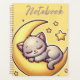 A cute kitty is asleep on a crescent moon. It is so adorable it will make you smile when using it.