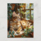 Cat Sleeping on Window Sill Among Flower Vines Postcard