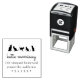 Charming return address rubber stamp for cat lovers features your name and return address beneath five cat silhouettes in varying positions.