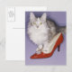 Cat stepping into high heel postcard