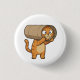 A round pinback button featuring a cute orange cat stuck inside an empty toilet paper roll. Funny and relatable design, perfect for decorating bags, jackets, or backpacks.
