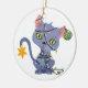 Cat Tangled in Christmas Lights Ceramic Tree Decoration