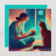 A woman sits on the floor, holding a candle in her hand, with a cat sitting across from her. Together, they share a secret, spiritual connection, as if the cat were her therapist. This whimsical and humourous fantasy art piece, created by Lumirala and Magic Media AI, captures the unique bond between the woman and her feline friend. Available in various sizes, this flat card is perfect for adding a touch of enchantment and humour to your message.It’s an ideal card for cat lovers, art enthusiasts, and anyone who appreciates the mystical and magical aspects of life.