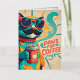 Cat wearing oversized sunglasses, holding a coffee foil greeting card